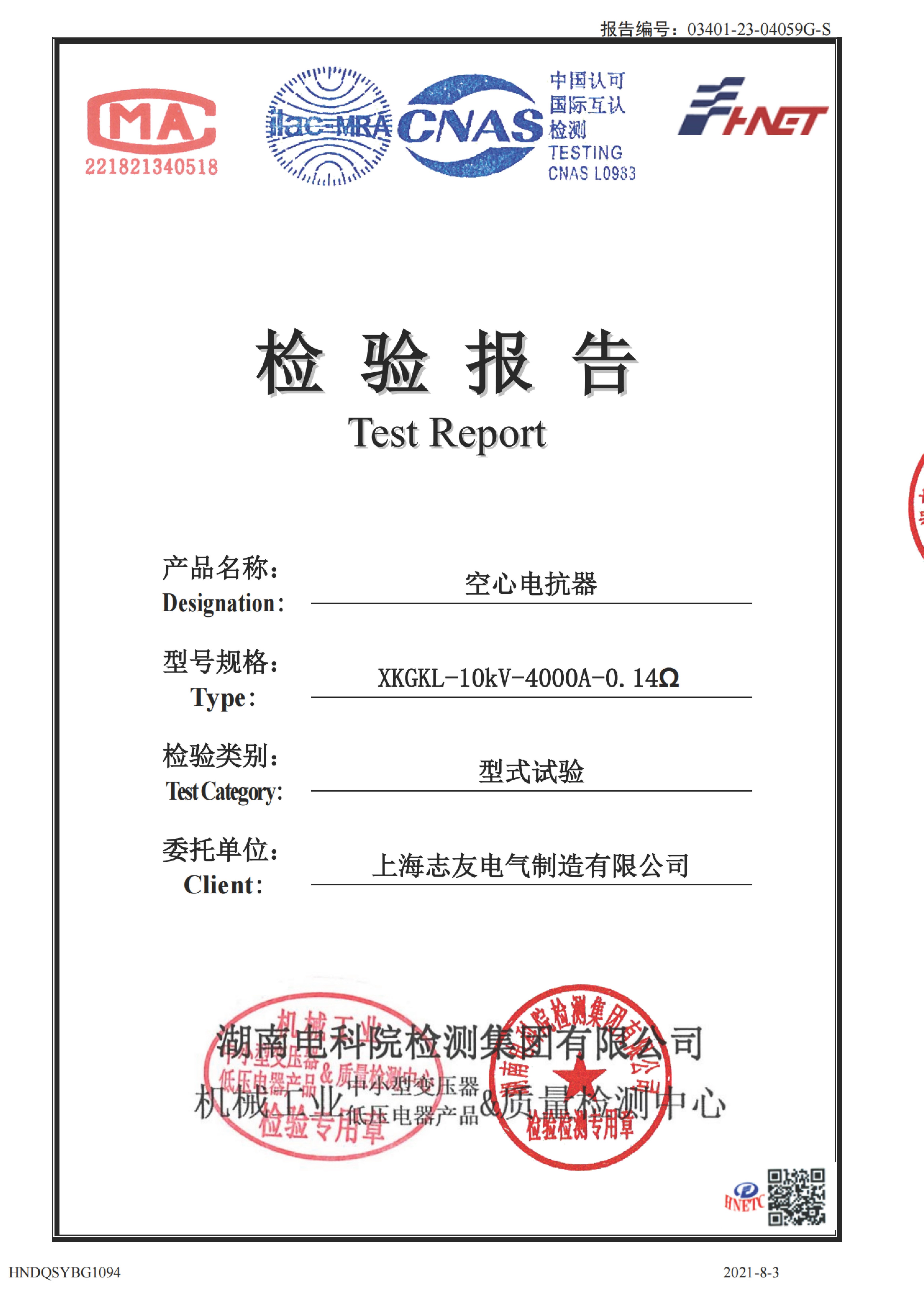 Отчет о национальных типовых испытаниях и проверках реакторов (10 кВ) Shanghai Zhiyou Electric Manufacturing Co., LTD Адрес: No.1 Jihe Road, Minhang District, Shanghai, China Контактное лицо: г-н Ян Цян WhatsApp: +86 18930912328 WeChat: +86 13122066665 Электронная почта: shanghaizhiyou@gmail.com Отдел продаж Тел.: +86-021-62968883,62968887 Служба поддержки клиентов Тел.: +86-021-36372830,36372831 Мобильный телефон: +86 13122066665 Веб-сайт: www.shanghaipowers.com