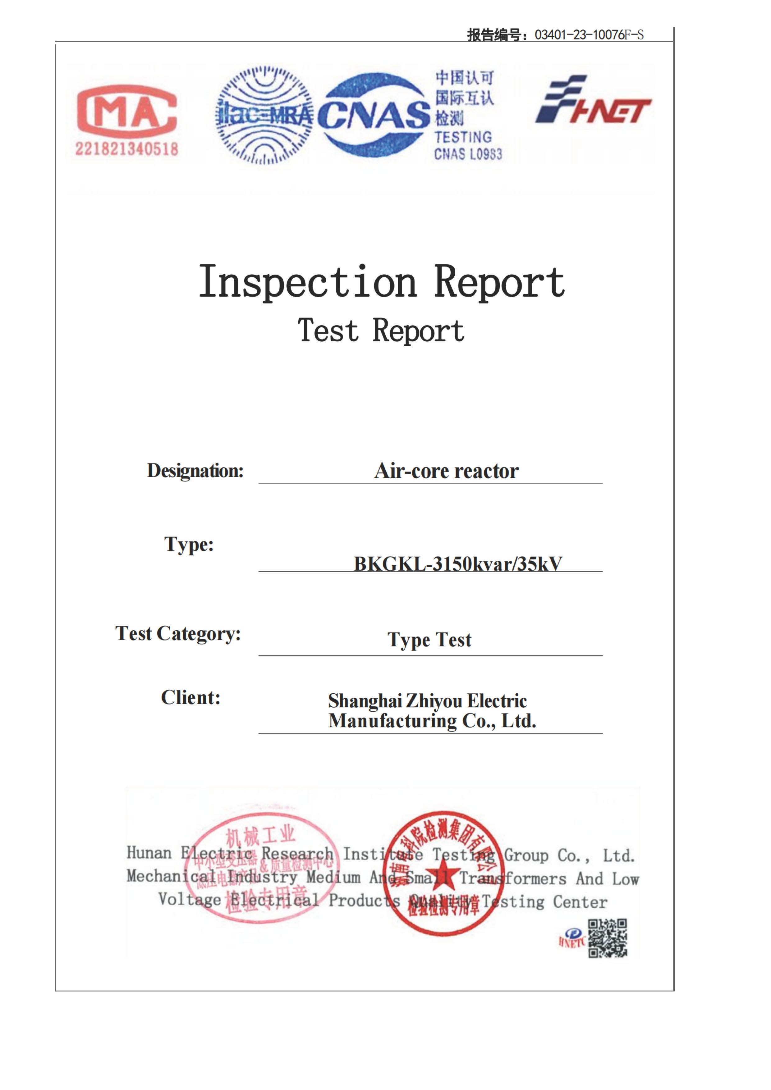 Отчет об испытаниях типа реактора на уровне 35 кВ 1